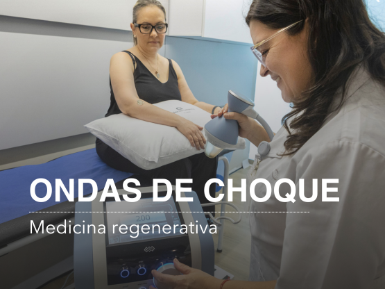 Las ondas de choque son un tratamiento utilizado dentro del campo de la medicina regenerativa. Se aplican mediante un dispositivo de última generación que, a través de estimulación mecánica celular, genera una respuesta biológica en el área afectada. Esta estimulación favorece que las células de la zona inflamada se activen, promuevan la reparación del tejido y aumenten la producción de sustancias que ayudan a controlar el dolor.